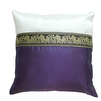 €6,99Produkt kaufenstickersquare Kissenhülle 40 cm x 40 cm dekorativ Elefanten Motiv Creme und lila Thai Silk Dekokissen Sofakissen Schlafzimmer