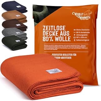 €18,33Produkt kaufenWolly Mammoth 80 % Wolle Decke – Sofa Kuscheldecke 167 x 230 cm Dicke Wärmedecke, Flauschige Wohndecke, Militärdecke, Wolldecke, Wärmende, Schwere Couchdecke, Draußen, Camping Rettungsdecke, Orange