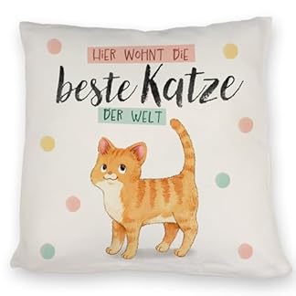 Beste Katze der Welt Kissen mit oranger Katze Katze und Spruch EIN bequemes DekoKissen für die Couch Katzen Katzenbesitzer Motiv rot Frauen KuschelKissen Katzenliebhaber Sofa