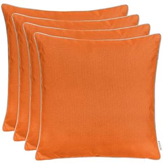 Brandsseller 4er Set Outdoor Kissen 45×45 cm – Wetterfeste Zierkissen mit Paspel – Wasserabweisende Gartenkissen & Dekokissen für draußen – Sofakissen für Balkon & Terrasse – Orange