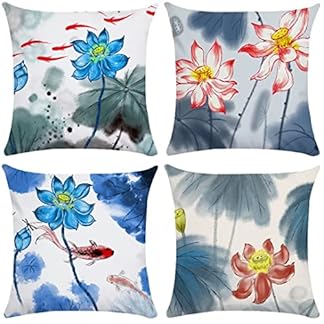 €76,99Produkt kaufen4er Set Blaue Lotusblüte Kissenbezug 80 x 80 cm Sofakissen Groß Kissenbezüge Leinen Deko Kissen Kissenhülle mit Unsichtbarem Reißverschluss Quadrat Kopfkissenbezug für Sofa Schlafzimmer Wohnzimmer D80