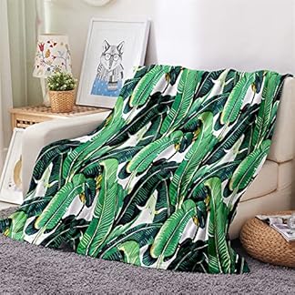 Chickwin Kuscheldecke Flauschige Sofa Decke Wohndecke, 3D Druck Warm Weiche Flanelldecke Soft Mikrofaser Fleecedecke Couchdecke Bettüberwurf TV Decke (80x120cm,Grüner Palmblatt)