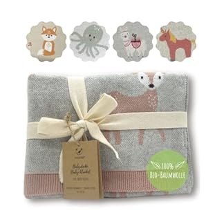 nidito Premium Bio-Baby-Decke Rosa Mädchen/Bio-Baumwoll-Decke Baby, 80×100 cm, 100% Bio-Baumwolle, REH-Kitz, Grau, Beige, Alt-Rosa, Wolldecke ideal als Erstlings-/ Kuscheldecke