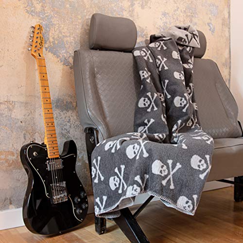 Glart Kuscheldecke Grau skulls XL 150×200 cm, weiche & warme Wolldecke extra flauschig als Sofadecke Couchdecke, kuschel Wohndecke, Plüsch Sofaüberwurf