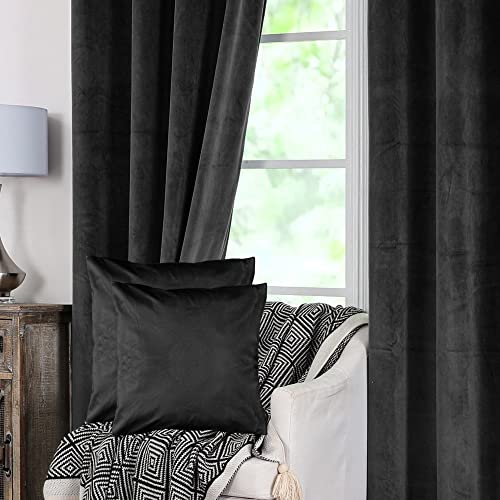 2er Pack Samt Kissenbezug Kissenhülle Set Sofakissen Samtkissen Dekorative Dekokissen Couchkissen Zierkissen Sofakissenbezug Kissen Bezug Hülle Bezüge Wohnzimmer (50x50cm, Schwarz)