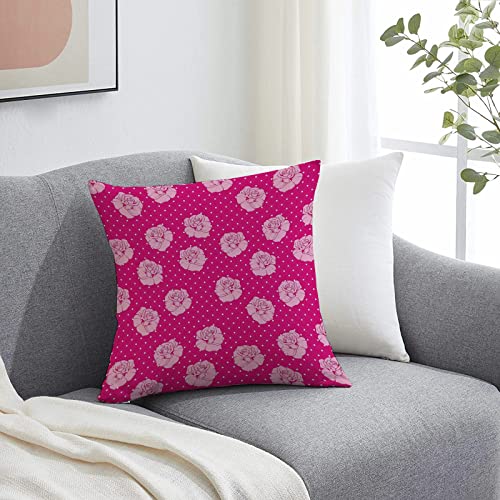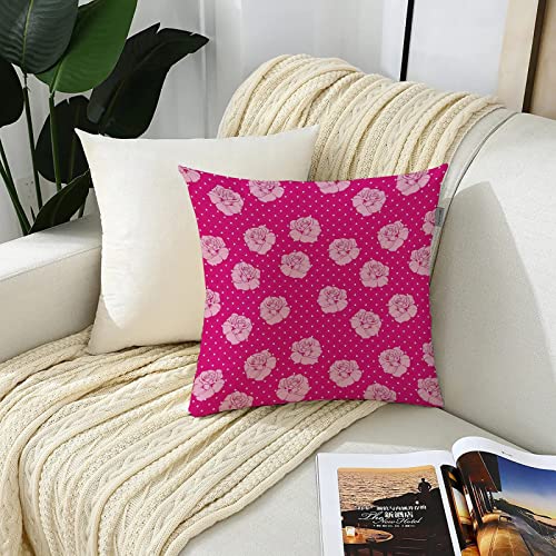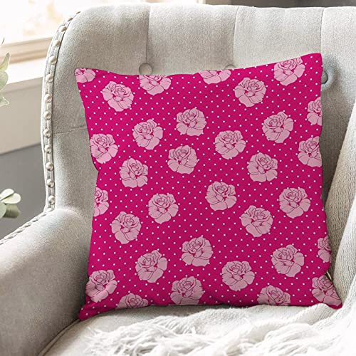 2er-Set Dekorativ Kissenbezug 45×45 cm,Pink, Schöne Hellrosa Rosen auf Weiß Gepunkteter Pink Hint,Polyester Kissenbezüge Dekokissen Kissenhülle Set Kissen Fall für Sofa Auto Schlafzimmer Zuhause Dekor
