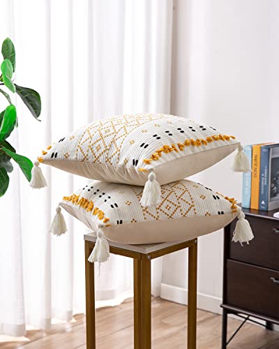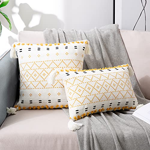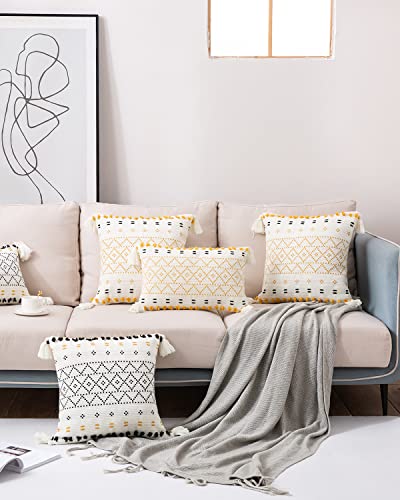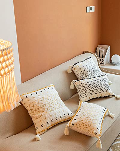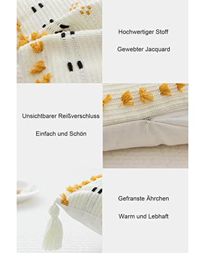 Boho Kissenbezug: Entworfen mit einem gewebten Muster, handgefertigten Quasten und getuftet. Schlicht und lässig, hinwieder edel und luxuriös, zeigt die Schönheit Böhmens. Dies ist eine großartige Stimmabgabe, um Ihrem Raum Farbe zu verleihen.(Das Produkt enthält keine Kissenfüllung)