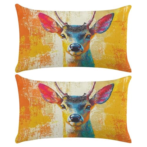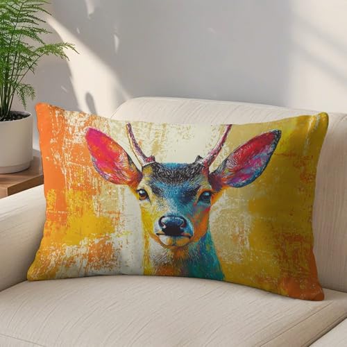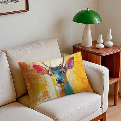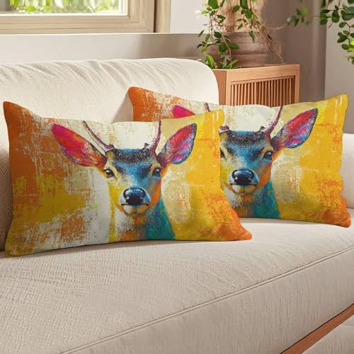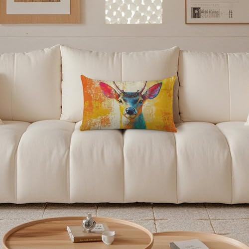 【OUTDOOR WATERPROOF MATERIAL】: Those outdoor cushion covers made of waterproof linen with Animals Deer The cushion covers are breathable, Fluffig and comfortable. keep your Rectangle throw pillow case clean and against scratch. The colorful design is more attractive. Fluffig handle and comfortable to touch, no pilling and no stimulation to the skin.
