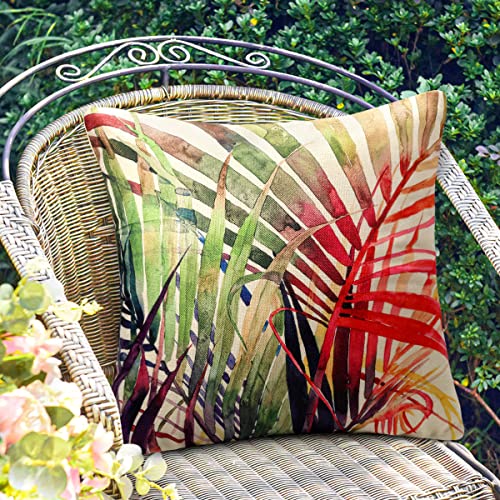 Umkehrbares Design:Set mit 2 quadratischen dekorativen kissenbezügen mit grünen blättern, mit doppelseitig bedrucktem muster, der druck ist klar und schön. Diese ästhetisch gestalteten kissen sind ein moderner, dekorativer kissenbezug mit einem tropischen, botanischen aquarellmuster und bringen frische und lebendigkeit in ihr zuhause und überzeugen ihre gäste.
