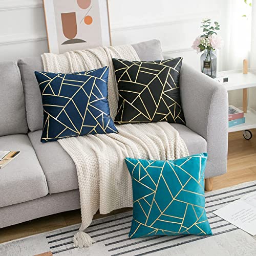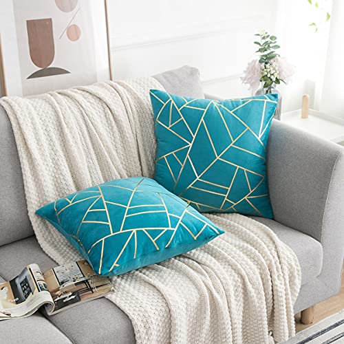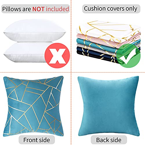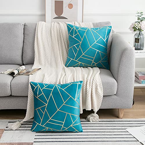 2er Set Samt Kissenbezug 50×50 Kissenbezüge Pfauenblau Samt Kissenbezug Soft Cosy Kissen Bezüge Deko Kissenbezüge Moderne Geometrie Muster Zierkissenbezug Dekokissen Sofakissen für Sofa Wohnzimmer