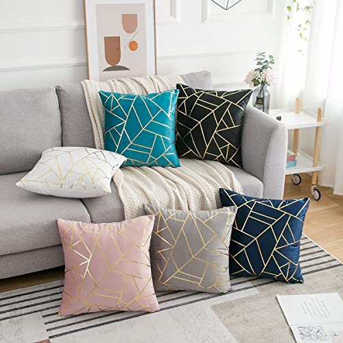 【Design】Und die einzigartigen geometrischen goldenen Folienlinien erhellen den Kissenbezug perfekt.Retro-Heißprägeverfahren, mit elegantem Glanz. Durch den versteckten Reißverschluss, sehen sie schöner aus.Das einzigartige Muster auf dem quadratischen Kissenbezug ist nur auf der Vorderseite.