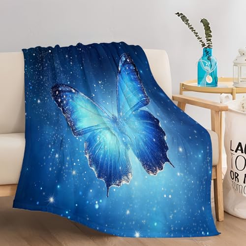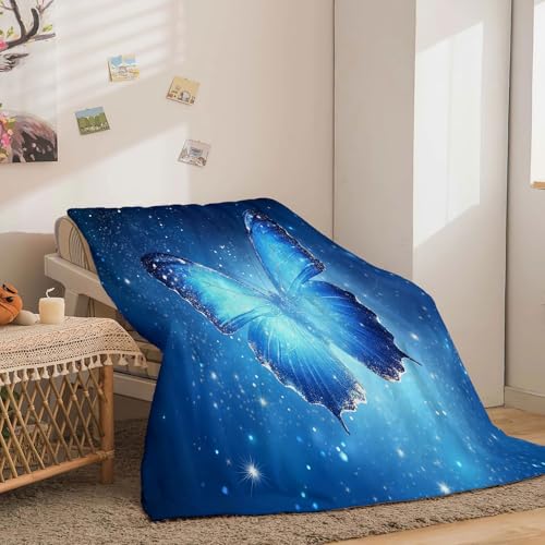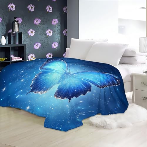 3D Druck Fleecedecke Digitale Kunst Schmetterling Flanelldecke Kuscheldecke Blau Weiche Warm Flauschige Decke TV Decke Sofadecke Wohndecke Tagesdecke Kinderdecken 150 x 200 cm