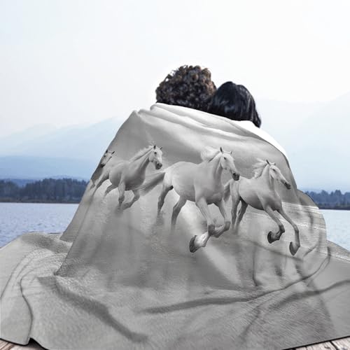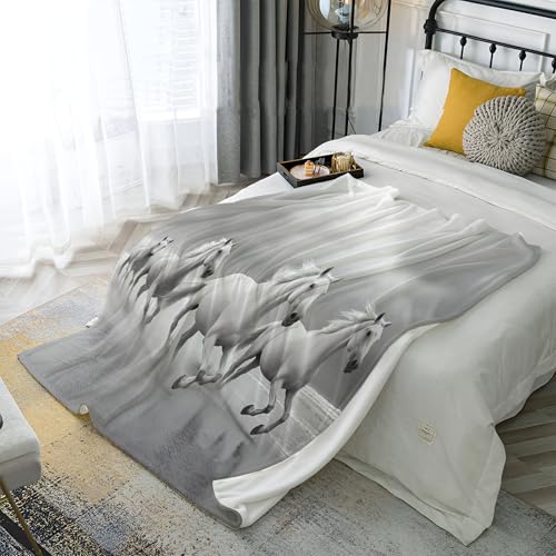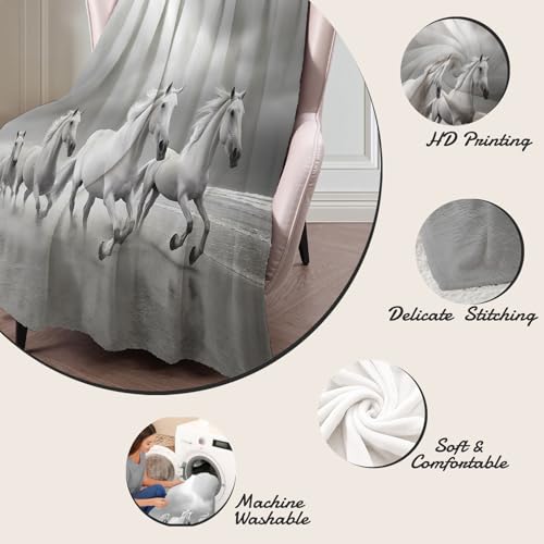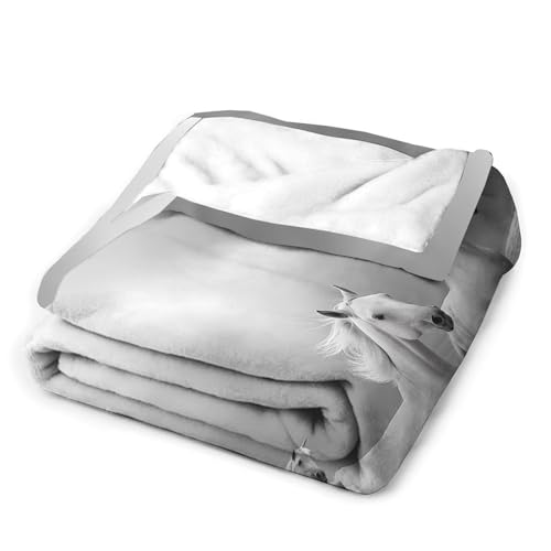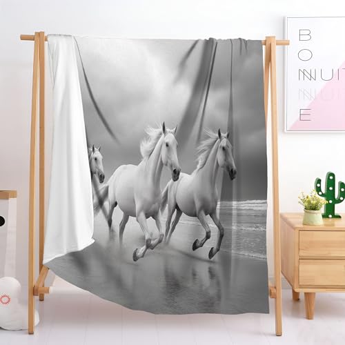【Angenehm warm】: Wir haben unsere klassische Flanell-Fleecedecke verbessert, damit sie noch weicher gemütlich und hautsympathisch. jetzt mit verbesserter Mikrofaser. Abdruck mit 3D Strand Pferd muster auf Oberseite, Rückseite in Weiß. Die exquisiten Farben verleihen dieser Decke ein eleganteres und eleganteres Aussehen und verleihen Ihrem Zimmer ein schickes Ambiente.