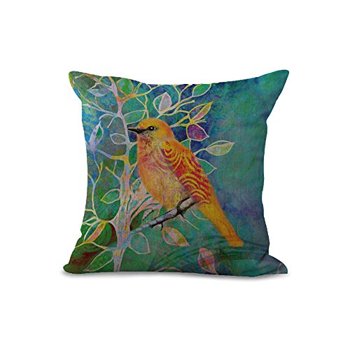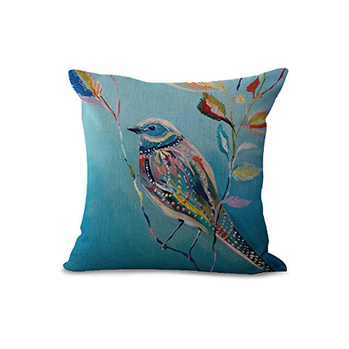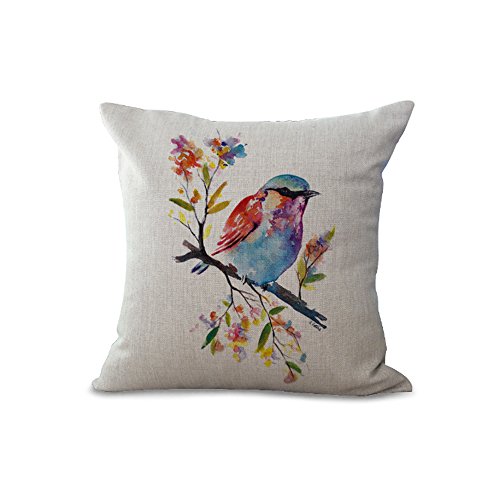 4 Stück Kissenbezug 45 x 45 cm, Bunte Tinte Malerei Stil Blumen und Vögel Serie Grau Beige Blau Baumwolle Leinen Kissenbezug