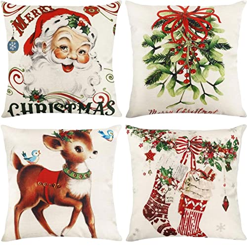 Warmes Geschenk: Perfekte Innen- und Außendekoration im Weihnachten. 4 verschiedene Weihnachten-Stil sorgen dafür, dass die Kissenbezüge perfekt zur Heimdekoration passen und leicht zu verschiedenen Wohnstilen passen. Sinnvoll zugunsten Sofa, Couch, Stuhl, Bett, Auto, Zelt, Sitz, Bank und Option Möbel. Tolle Dekoration zugunsten Wohnzimmer, Schlafzimmer, Garten, Bauernhaus, Terrasse, Balkon, Schlafzimmer, Küche, Büro, Café, Party, Picknick, Hochzeit usw.
