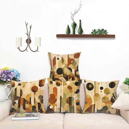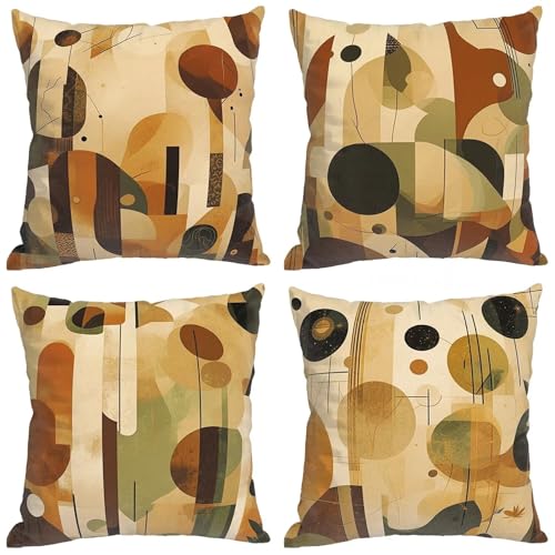 4er Set Kissenbezug 30x30cm Modern Gebranntes Orange Muster Sofakissen Kopfkissenbezug Soft Doppelseitigen Druck Kissenbezüge Pillow, für Couch Bett Sofa Home Wohnzimmer Dekokissen Kissenhülle