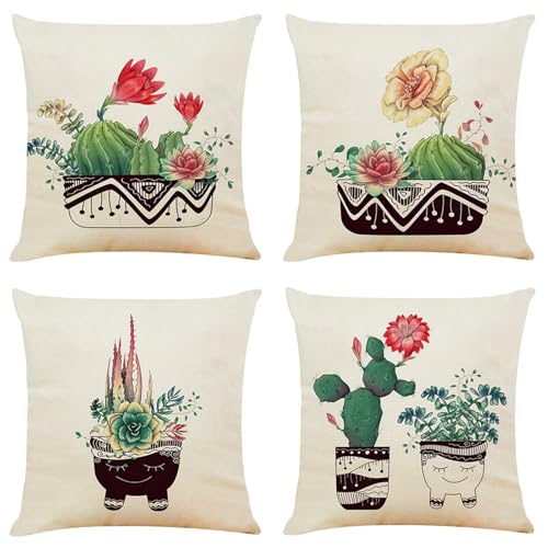🌹4er Set KISSENBEZÜGE : Sie erhalten 4 Segment Kissenbezüge in 4 verschiedenen Stilen, lebendige Muster, schöne Farben, dauerhafte Färbung, können Sie Ihre Lieblings-Stile wählen, um Ihr Zuhause zu dekorieren, genügend Menge für Sie zu bearbeiten und zu waschen.