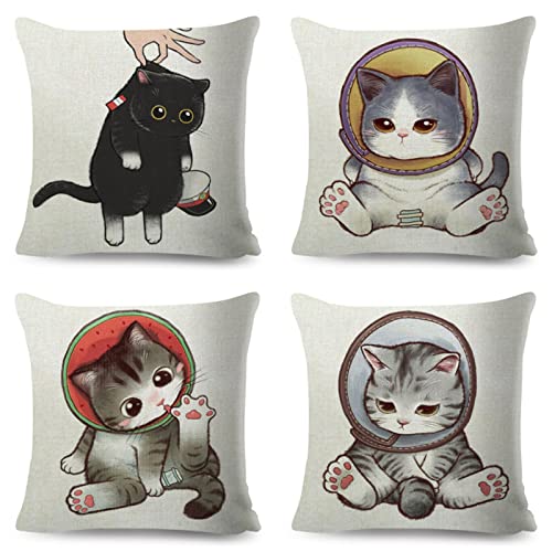 🎈【MATERIAL DER KISSENBEZÜGE】 Dickes Upgrade. Doppelseitiger Musterdruck. Kissenbezüge bestehen aus hochwertigem Baumwollleinen. 4 PCS sind im Paket enthalten. Es ist kein eigenartiger Geruch, bequem, atmungsaktiv, langlebig und stilvoll, Kissen für alle Jahreszeiten entsprechend.