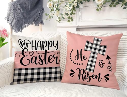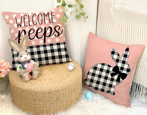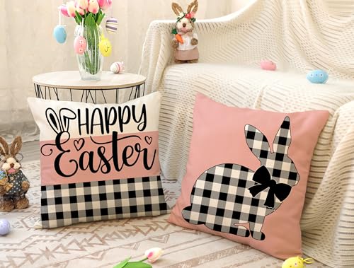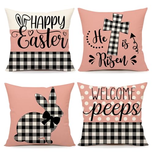 Lieferumfang: Set mit 4 Oster-Kissenbezügen, ohne Einsatz oder Füllstoff. Muster ist Zwar auf der Vorderseite und kein Ausgabe auf der Rückseite. (4TH Emotion Kissenbezug kann Ihnen helfen, Osterdekorationen schnell zu berichtigen. Auch ein super süßes Geschenk für Ihre Familie und Freunde.)