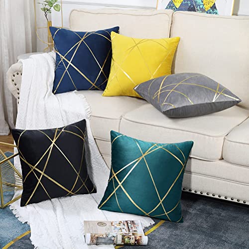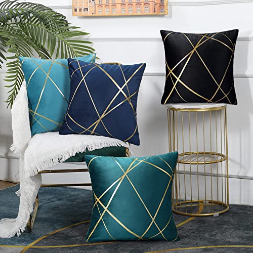 BREITE ANWENDUNG: Mehrfarbige Samt-Goldstreifen-Wurfkissen sind perfekt anstelle den Innen- oder Außenbereich. Wohnzimmer, Schlafzimmer, Büro, Couch, Sofa, Stuhl, Auto, Party, Balkon, Terrasse usw. Diese Kissenbezüge setzen einen perfekten Wohnakzent, der zu verschiedenen Einrichtungsstilen passt.