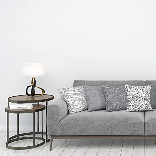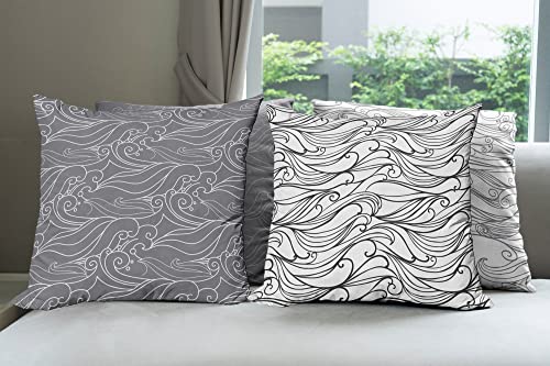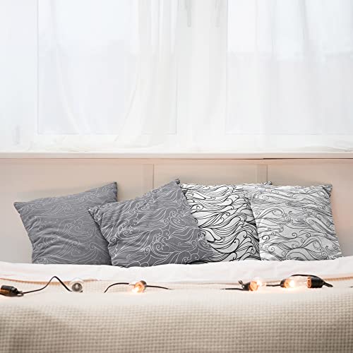 ABAKUHAUS Abstrakte Kunst Dekokissen Kissenbezug 4er Pack, Moderne Wellenkontur Modern Accent Doppelseitiger Digitaldruck, 45 cm x 45 cm, Grau Schwarz Weiß