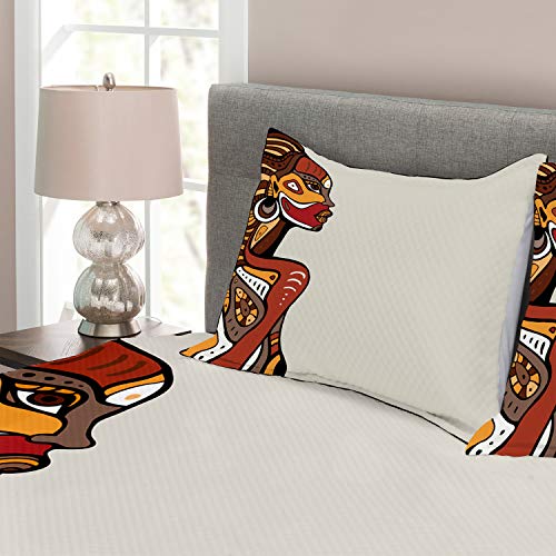 ABAKUHAUS afrikanisch Tagesdecke Set, Hand gezeichnete Frauen-Kunst, Set mit Kissenbezügen Romantischer Stil, für Doppelbetten 264 x 220 cm, Mehrfarbig