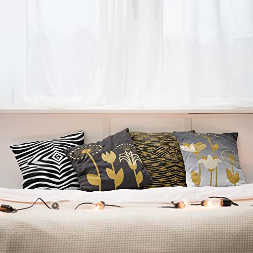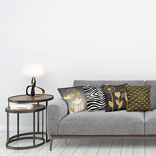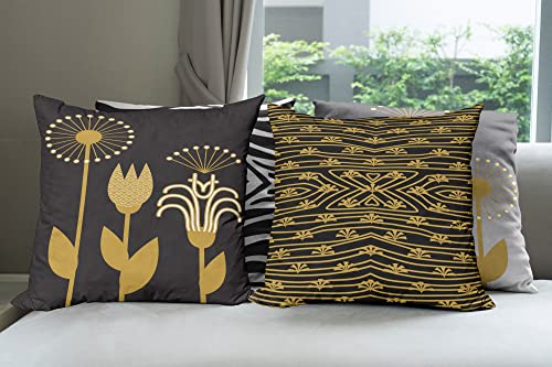 ABAKUHAUS Art Deco Dekokissen Kissenbezug 4er Pack, Retro Blumen Animal Print Modern Accent Doppelseitiger Digitaldruck, 60 cm x 60 cm, Blasser Kaffee Anthrazitgrau