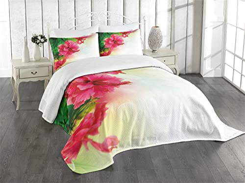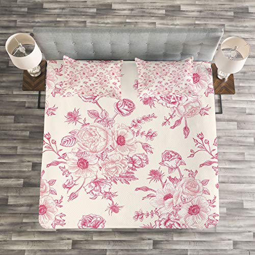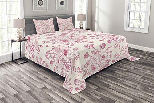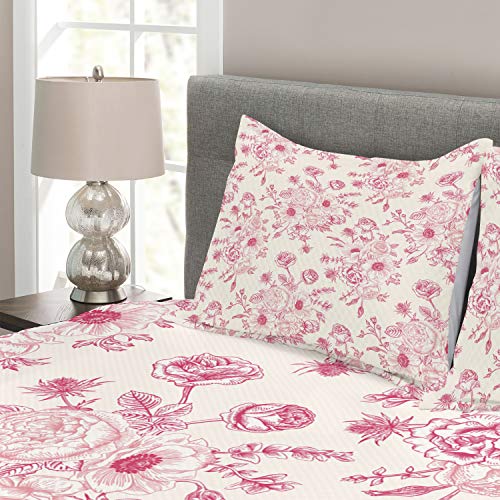 ABAKUHAUS Blumen Tagesdecke Set, Romantische Rosen-Blumen, Set mit Kissenbezügen Ohne verblassen, für Doppelbetten 264 x 220 cm, Hellrosa