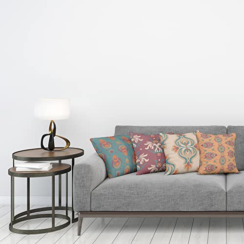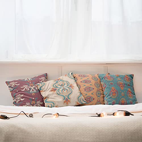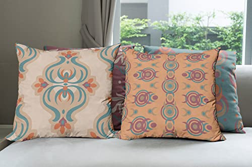 ABAKUHAUS Böhmisch Dekokissen Kissenbezug 4er Pack, Kulturelles Motiv Abstrakt Modern Accent Doppelseitiger Digitaldruck, 40 cm x 40 cm, Petrolblau Pfirsich und Beige