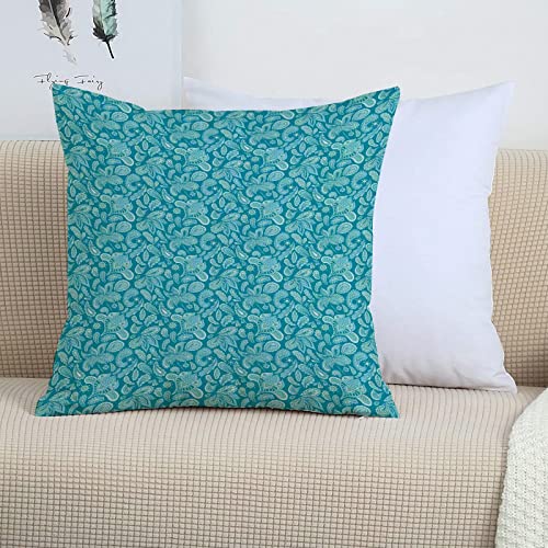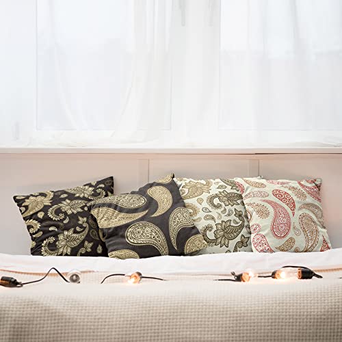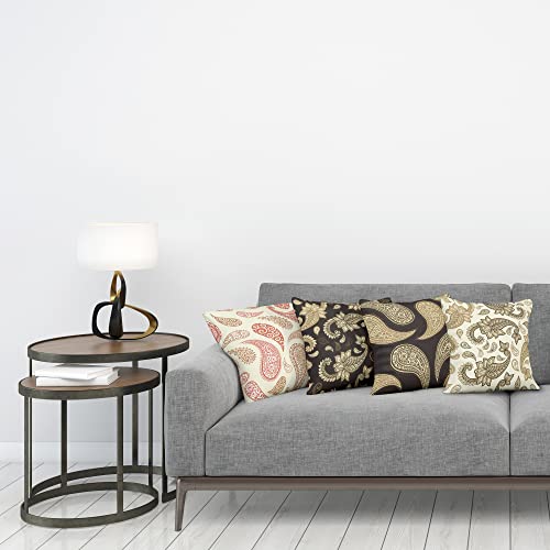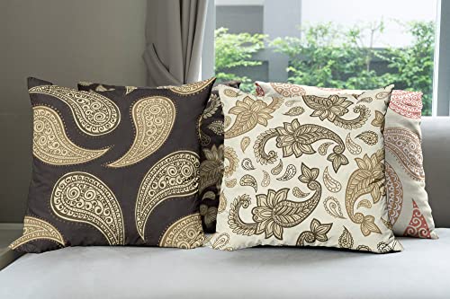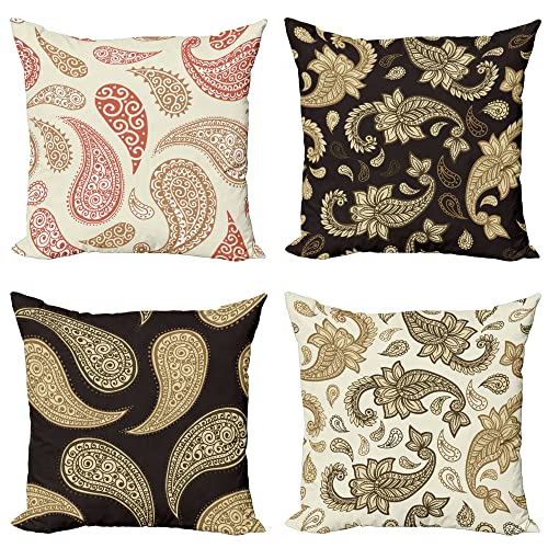 ABAKUHAUS Böhmisch Dekokissen Kissenbezug 4er Pack, Paisley Tröpfchen und Blumen Modern Accent Doppelseitiger Digitaldruck, 45 cm x 45 cm, Dunkelbraun Eierschale und Koralle