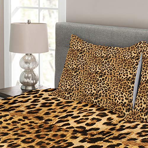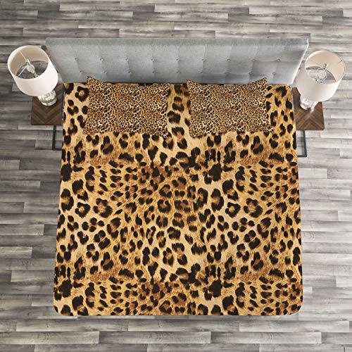 ABAKUHAUS Braun Tagesdecke Set, Leopard-Druck, Set mit Kissenbezügen Waschbar, für Doppelbetten 264 x 220 cm, Braun