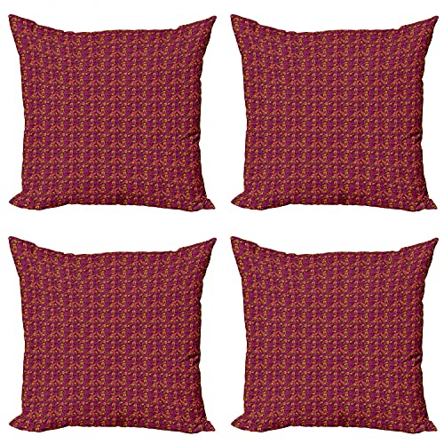 ABAKUHAUS Brown Paisley Dekokissen Kissenbezug 4er Pack, Damast-Folk Antique, Modern Accent Doppelseitiger Digitaldruck, 60 x 60 cm, Dunkel Magenta Lachs