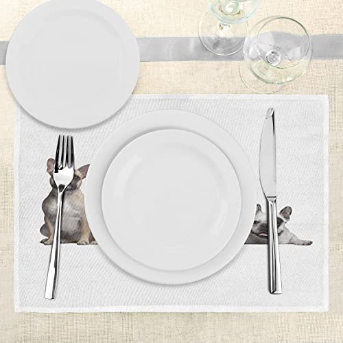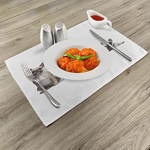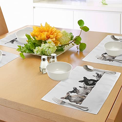 ABAKUHAUS Bulldogge Platzmatten, Gruppe Junge französische Bulldoggen mit entzückenden Ausdruck-Tierfreund-Foto, Tiscjdeco aus Farbfesten Stoff für das Esszimmer und Küch, Weiß Beige Schwarz