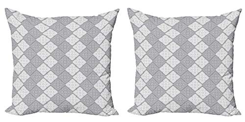 ABAKUHAUS Damast Dekokissen Kissenbezug 2er Pack, Victorian Oriental Retro, Modern Accent Doppelseitiger Digitaldruck, 50×50, Hell Grau