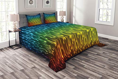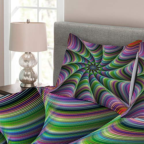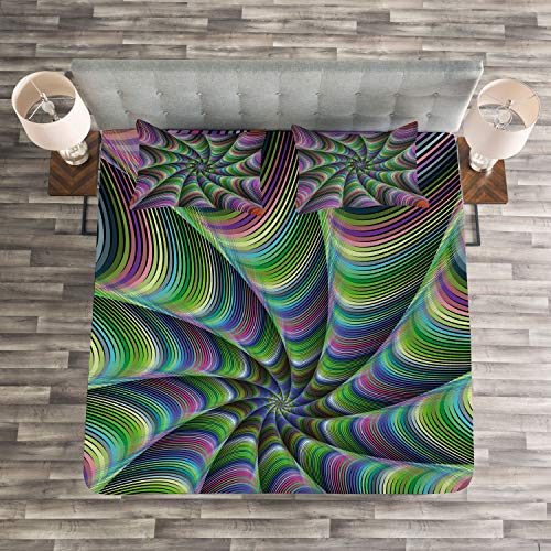 ABAKUHAUS Fractal Tagesdecke Set, Blumen-Blumenarten, Set mit Kissenbezügen Kein verblassen, für Doppelbetten 220 x 220 cm, Lila Grün