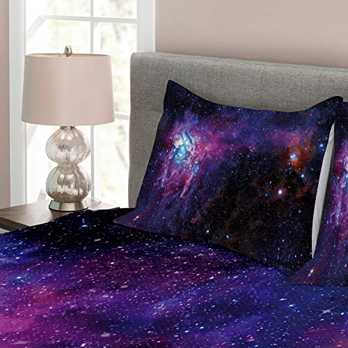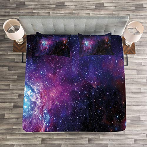 ABAKUHAUS Galaxis Tagesdecke Set, Mutter-Baby-Nebel-Ansicht, Set mit Kissenbezügen Mit Digitaldruck, für Doppelbetten 220 x 220 cm, Schwarz lila blau