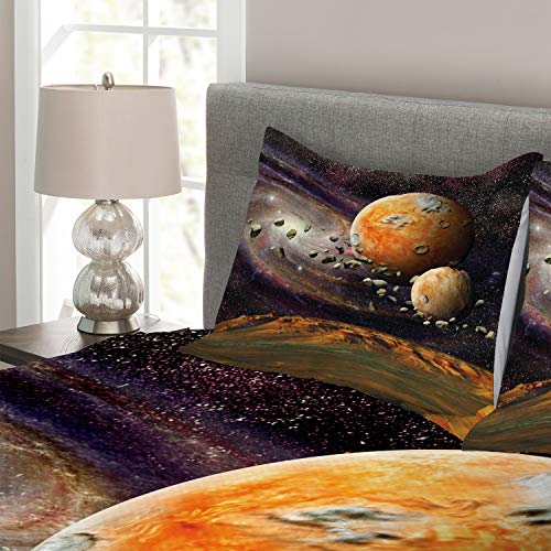 ABAKUHAUS Galaxis Tagesdecke Set, Universum Raum Planeten, Set mit Kissenbezügen Weicher Stoff, für Doppelbetten 220 x 220 cm, Grün-Violettes Gelb-Weiß