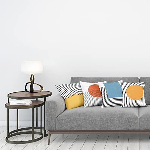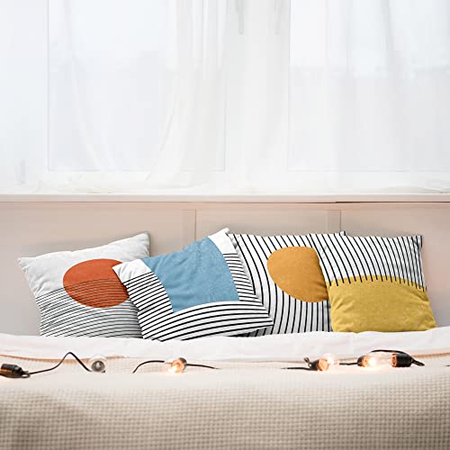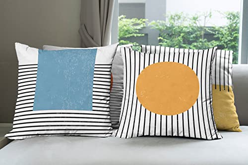 ABAKUHAUS Geometrisch Gemustert Dekokissen Kissenbezug 4er Pack, Streifen und Formen Modern Accent Doppelseitiger Digitaldruck, 40 cm x 40 cm, Blau Orange und Weiß