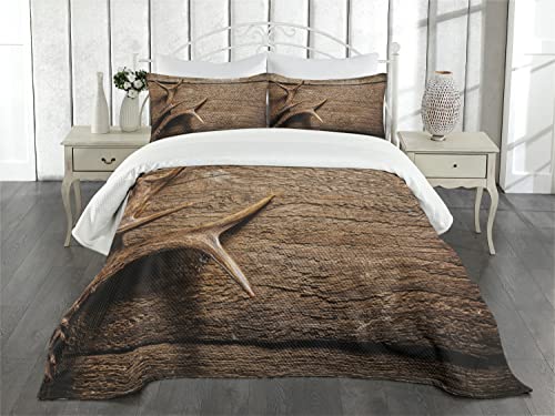 ABAKUHAUS Geweih Tagesdecke Set, Hölzerne Rotwild Rustic Antler, Set mit Kissenbezug luftdurchlässig, für Einzelbetten 170 x 220 cm, Umbrabraun