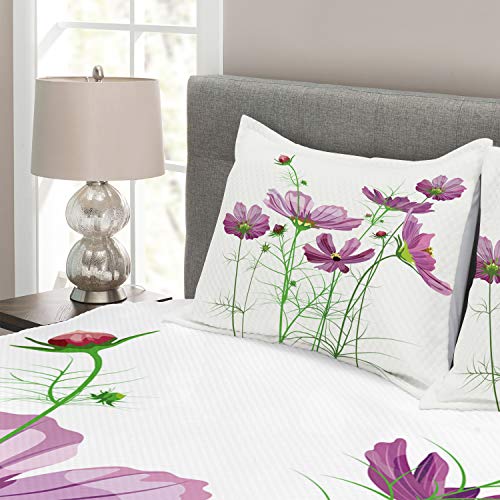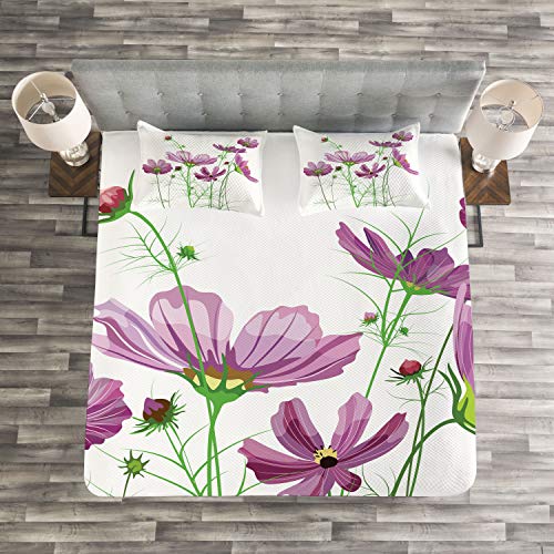 ABAKUHAUS Green Flower Tagesdecke Set, Frühlings-Laub, Set mit Kissenbezügen Kein verblassen, für Doppelbetten 220 x 220 cm, Lila grün
