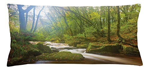 ABAKUHAUS Grün Kissenbezug, Wald in Golitha Falls, Dekokissenhüllen Waschbar Inn/Outdoor Beidseitiger Druck mit Reißverschluß, 90 x 40 cm, Grün Hellbraun