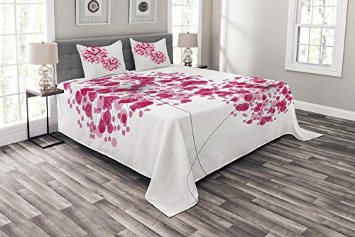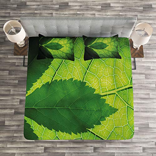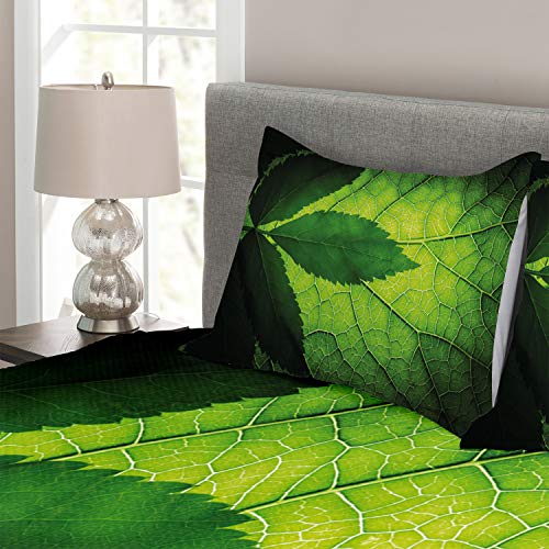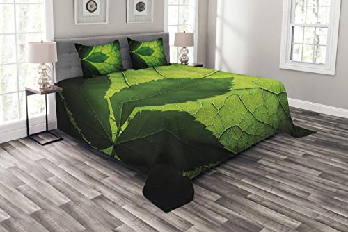 ABAKUHAUS Grün Tagesdecke Set, Brazilian Baum Blatt Eco, Set mit Kissenbezügen farbfester Digitaldruck, für Doppelbetten 220 x 220 cm, Dunkelgrün