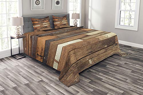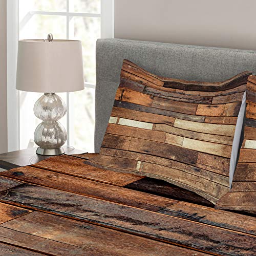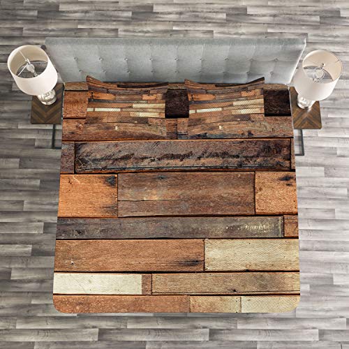 ABAKUHAUS Hölzern Tagesdecke Set, Brown Rustic Boden Blick, Set mit Kissenbezügen Waschbar, für Doppelbetten 220 x 220 cm, Braun