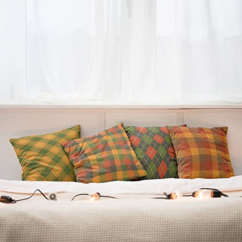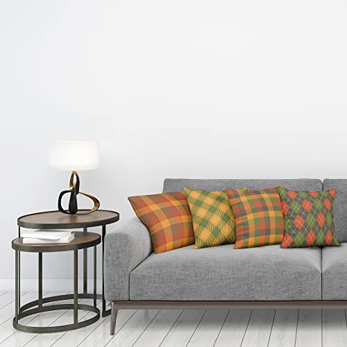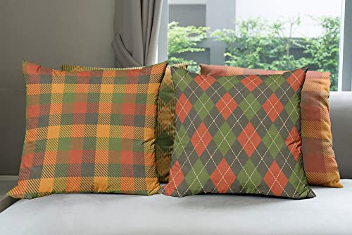 ABAKUHAUS Kariert Dekokissen Kissenbezug 4er Pack, Herbstliches Tartan-Karo Modern Accent Doppelseitiger Digitaldruck, 40 cm x 40 cm, Ringelblume Grün Rost