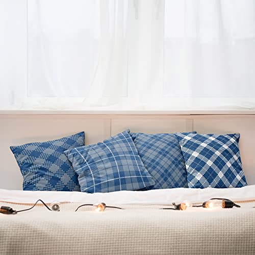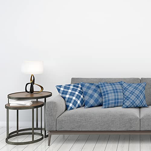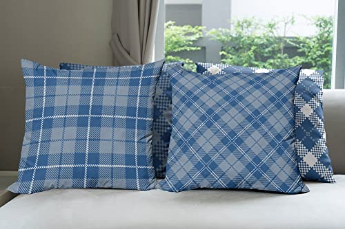 ABAKUHAUS Kariert Dekokissen Kissenbezug 4er Pack, Kariertes Schottisches Tartan Modern Accent Doppelseitiger Digitaldruck, 40 cm x 40 cm, Blau Grau Nachtblau