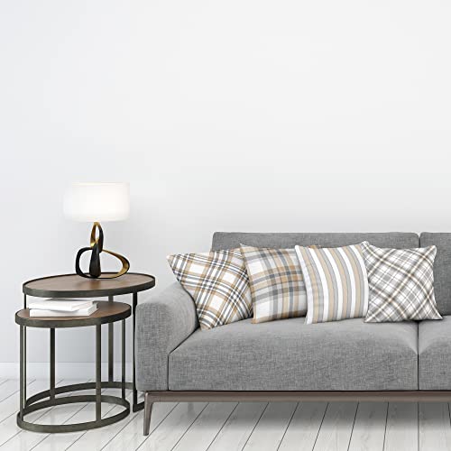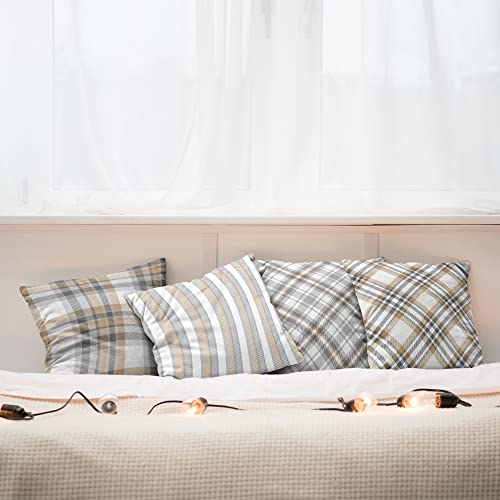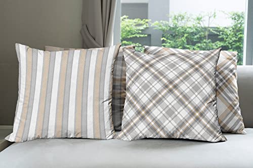 ABAKUHAUS Kariert Dekokissen Kissenbezug 4er Pack, Lines Tartan Plaid Motiv Modern Accent Doppelseitiger Digitaldruck, 40 cm x 40 cm, Blassbraun Grau und Weiß