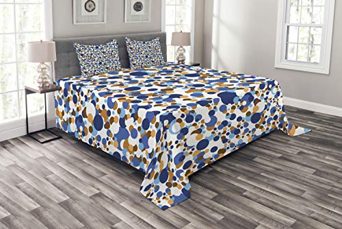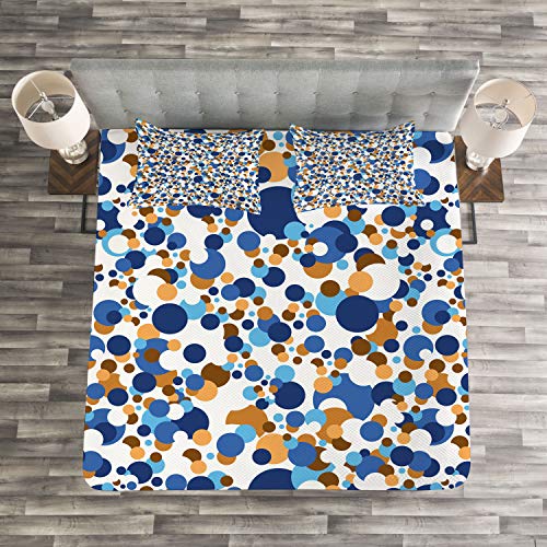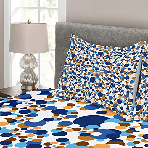 ABAKUHAUS Konfetti Tagesdecke Set, Blase Retro Festliche, Set mit Kissenbezügen Weicher Stoff, für Doppelbetten 220 x 220 cm, Himmelblau Zimt Aprikose
