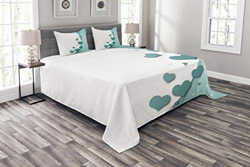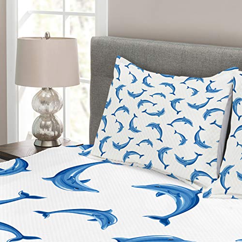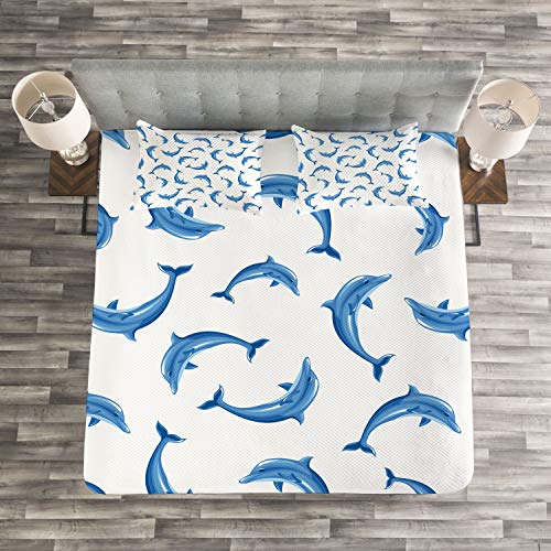 ABAKUHAUS Meerestiere Tagesdecke Set, Wildtiere unter dem Meer, Set mit Kissenbezügen farbfester Digitaldruck, für Doppelbetten 220 x 220 cm, Weiß Blau