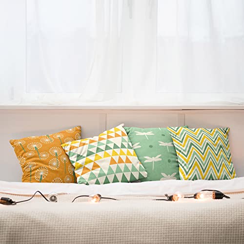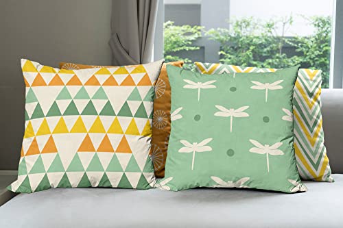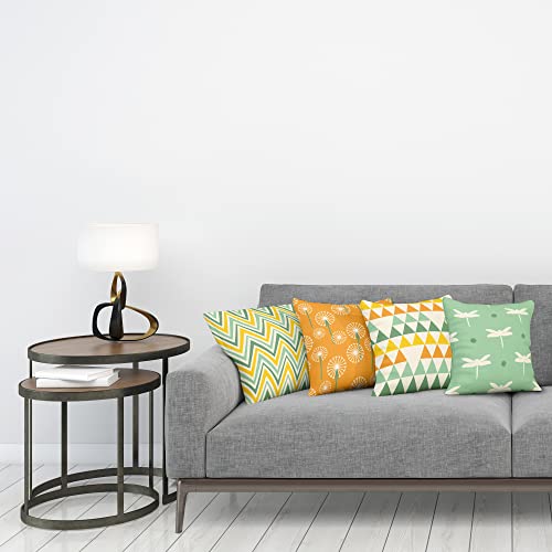 ABAKUHAUS Modern Dekokissen Kissenbezug 4er Pack, Löwenzahn Libelle Chevron Modern Accent Doppelseitiger Digitaldruck, 40 cm x 40 cm, Orange Seegrün Senf