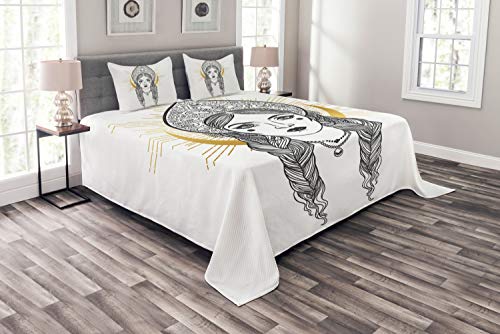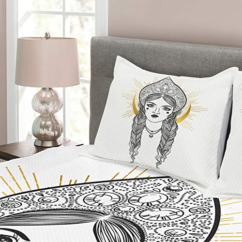 ABAKUHAUS Mond-Strahlen Tagesdecke Set, Frau, die EIN kokoshnik, Set mit Kissenbezügen Ohne verblassen, für Doppelbetten 264 x 220 cm, Charcoal Grau Weiß